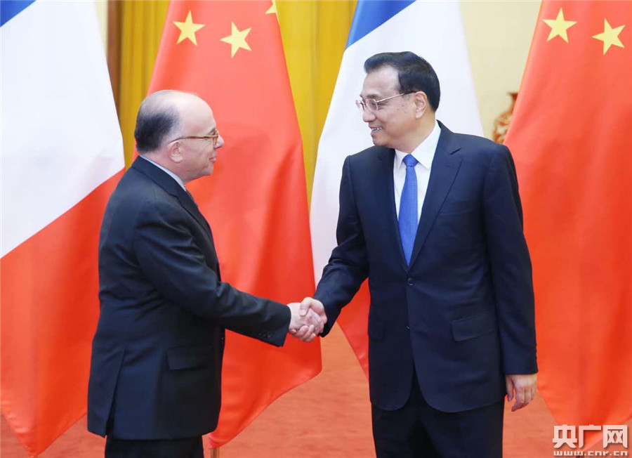 國務(wù)院總理李克強(qiáng)21日下午在人民大會堂北大廳舉行儀式,歡迎法國總理卡澤納夫訪華。