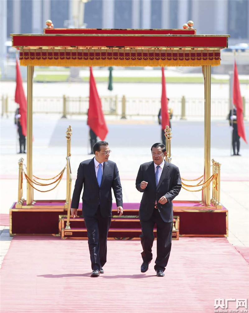 李克強(qiáng);儀式歡迎;柬埔寨首相;洪森