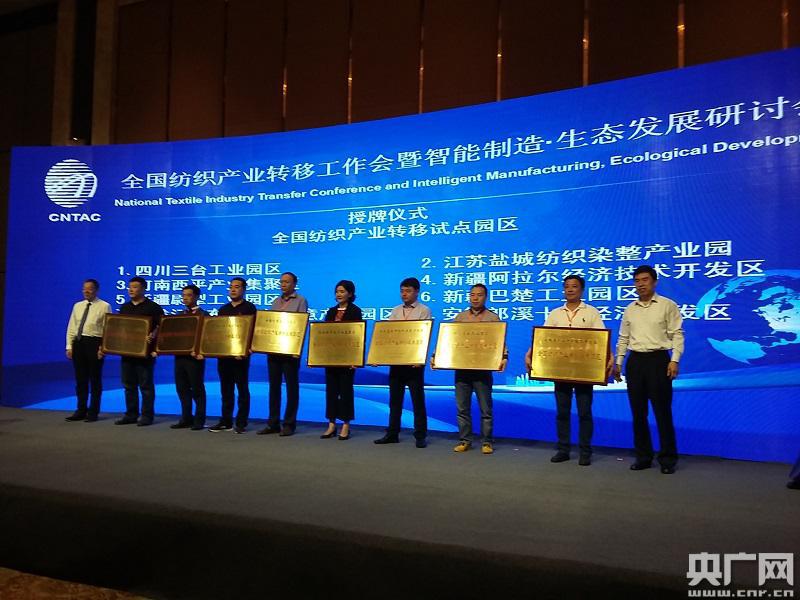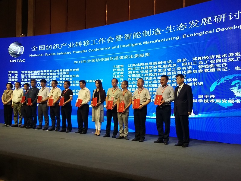 為產(chǎn)業(yè)轉(zhuǎn)移工作樹(shù)立試點(diǎn)、示范,表彰產(chǎn)業(yè)轉(zhuǎn)移優(yōu)秀工作者,中國(guó)紡織工業(yè)聯(lián)合會(huì)會(huì)同有關(guān)部門(mén)考察評(píng)審,研討會(huì)上宣布,決定將新疆阿拉爾經(jīng)濟(jì)技術(shù)開(kāi)發(fā)區(qū)、新疆尉犁工業(yè)園區(qū)、黑龍江亞布力服飾創(chuàng)意產(chǎn)業(yè)園區(qū)、四川三臺(tái)工業(yè)園區(qū)、江蘇鹽城紡織染整產(chǎn)業(yè)園、河南西平產(chǎn)業(yè)集聚區(qū)、新疆巴楚工業(yè)園區(qū)列為全國(guó)紡織產(chǎn)業(yè)轉(zhuǎn)移試點(diǎn)園區(qū);授予云南保山輕紡產(chǎn)業(yè)園、四川屏山縣工業(yè)園區(qū)、江蘇沭陽(yáng)經(jīng)濟(jì)技術(shù)開(kāi)發(fā)區(qū)、陜西咸陽(yáng)市新興紡織工業(yè)園、湖北川東中部輕紡服裝之都為“全國(guó)紡織產(chǎn)業(yè)轉(zhuǎn)移示范園區(qū)”稱號(hào)。 此外,在全面落實(shí)“一帶一路”國(guó)家戰(zhàn)略,以及長(zhǎng)江經(jīng)濟(jì)帶、京津冀協(xié)同發(fā)展、中西部轉(zhuǎn)移的工作中,行業(yè)協(xié)會(huì)及園區(qū)圍繞“調(diào)結(jié)構(gòu)、促升級(jí)、建設(shè)特色園區(qū)、智慧園區(qū)”為主線,積極開(kāi)展工作,涌現(xiàn)出一批抓機(jī)遇、求發(fā)展、攻難關(guān)、做貢獻(xiàn)的先進(jìn)單位及先進(jìn)個(gè)人,在他們身上集中反映了新形勢(shì)下振興紡織的精神面貌。會(huì)上還宣布了“關(guān)于表彰2016年全國(guó)紡織園區(qū)建設(shè)突出貢獻(xiàn)獎(jiǎng)及2016年招商工作先進(jìn)個(gè)人的決定”。