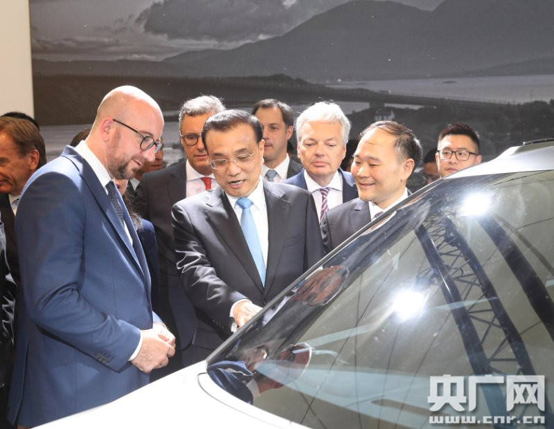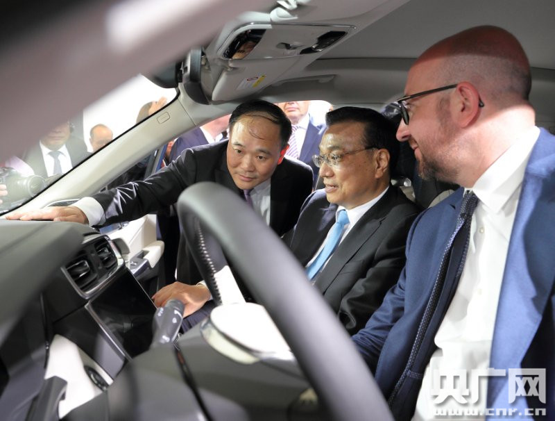 央廣網(wǎng)布魯塞爾6月3日消息(記者馮悅)李克強總理坐在車內(nèi),駕駛位上坐著比利時首相米歇爾,探身進車里為這“豪華乘客陣容”講解的是吉利集團董事長李書福。當?shù)貢r間2日,李克強由米歇爾陪同在布魯塞爾參觀吉利—沃爾沃創(chuàng)新成果展。兩位領(lǐng)導人坐進一輛依托吉利—沃爾沃研發(fā)的自主品牌汽車體驗。