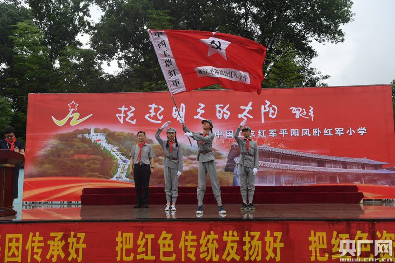 全國(guó)紅軍小學(xué)建設(shè)工程理事會(huì)副理事長(zhǎng)兼秘書(shū)長(zhǎng)方強(qiáng)在接受記者采訪時(shí)表示,今年是紅軍小學(xué)建設(shè)工程實(shí)施十周年,也即將迎來(lái)中國(guó)人民解放軍建軍九十周年,為進(jìn)一步傳承、弘揚(yáng)紅軍精神,牢記、落實(shí)習(xí)近平總書(shū)記的‘不忘初心,讓紅色基因代代相傳’重要指示精神,以及習(xí)近平總書(shū)記向全黨全軍發(fā)出的‘紅色基因代代相傳’偉大號(hào)召,全國(guó)紅軍小學(xué)建設(shè)工程理事會(huì)專門來(lái)到革命老區(qū)浙江省平陽(yáng)縣,向山門粟裕紅軍小學(xué)、鳳臥紅軍小學(xué)舉行授旗授牌儀式!