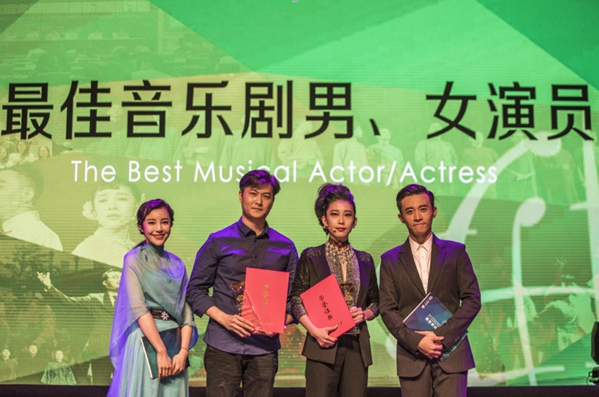 本屆匯演最佳男女演員獲得者蔡鵬(左二)、劉楊(右二)