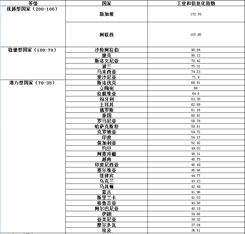 “優(yōu)越型”國(guó)家如中西歐、中東歐部分國(guó)家以及新加坡等國(guó)工業(yè)和信息化發(fā)展水平較高,國(guó)民經(jīng)濟(jì)、基礎(chǔ)設(shè)施、科技創(chuàng)新等支撐力較強(qiáng)。相對(duì)于海外建廠、貿(mào)易進(jìn)出口等傳統(tǒng)對(duì)外合作方式,這些國(guó)家更適合我國(guó)企業(yè)通過(guò)合作研發(fā)、資本融通等方式交流先進(jìn)技術(shù),加強(qiáng)新興經(jīng)濟(jì)領(lǐng)域方面的溝通、合作,進(jìn)一步提升雙方的整體實(shí)力。