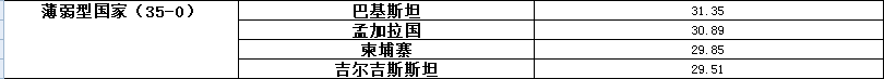 從評(píng)定結(jié)果看,“優(yōu)越型”等級(jí)國(guó)家占比為5%,“穩(wěn)健型”占比為15%,“潛力型”占比為70%,“薄弱型”,占比為10%。其中,新加坡指數(shù)最高,達(dá)172.78,吉爾吉斯斯坦最低,僅為29.51,沿線國(guó)平均指數(shù)為58.61。