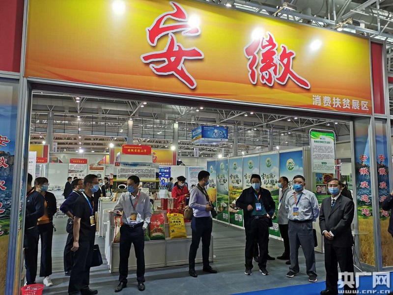 第二屆全國(guó)貧困地區(qū)優(yōu)質(zhì)特色糧油產(chǎn)品展銷(xiāo)會(huì)安徽展區(qū)(中央廣播電視總臺(tái)央廣記者 張子亞 攝)