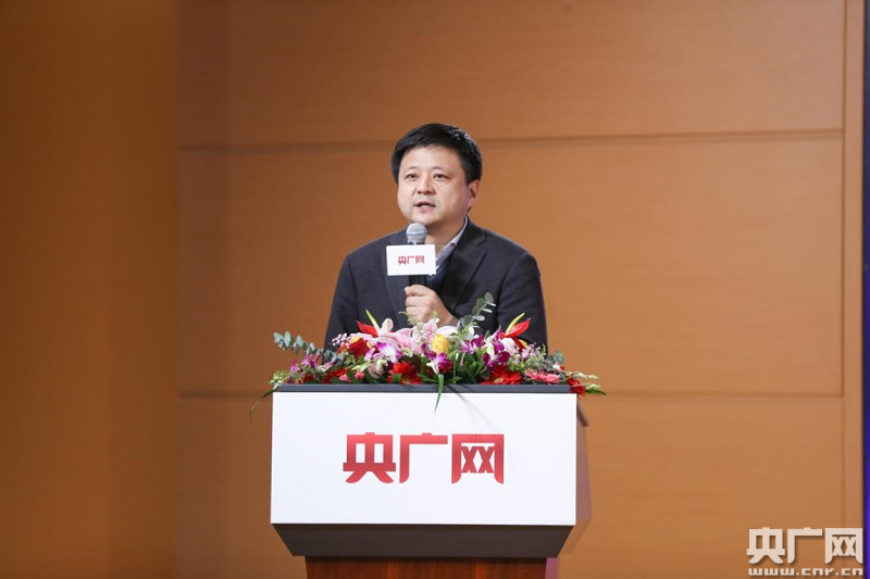 12月15日,央廣網(wǎng)品牌戰(zhàn)略簽約暨云上有機(jī)農(nóng)場(chǎng)計(jì)劃啟動(dòng)發(fā)布會(huì)現(xiàn)場(chǎng),央廣網(wǎng)董事長(zhǎng)兼總編輯張軍致辭(央廣網(wǎng)記者 韓靖 攝)