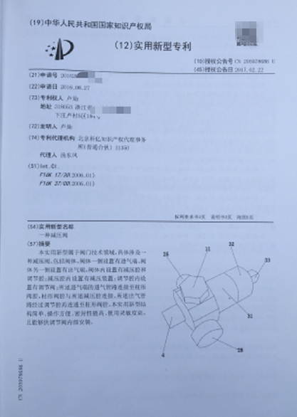 浙江臺(tái)州的個(gè)體戶盧燦在2017年獲得了一種自動(dòng)恒壓式減壓閥的國(guó)家專利證書,同時(shí)還具有營(yíng)業(yè)執(zhí)照、商標(biāo)注冊(cè)證等系列證照。但是2018年8月,盧燦被河南省平頂山警方帶走;去年11月,平頂山市衛(wèi)東區(qū)人民法院一審以非法制造、買賣槍支罪,判處盧燦有期徒刑10年。盧燦不服判決,提出上訴。盧燦的企業(yè)具有營(yíng)業(yè)執(zhí)照,恒壓閥擁有國(guó)家專利、也注冊(cè)了商標(biāo),為何與制造、買賣槍支案件掛上鉤?