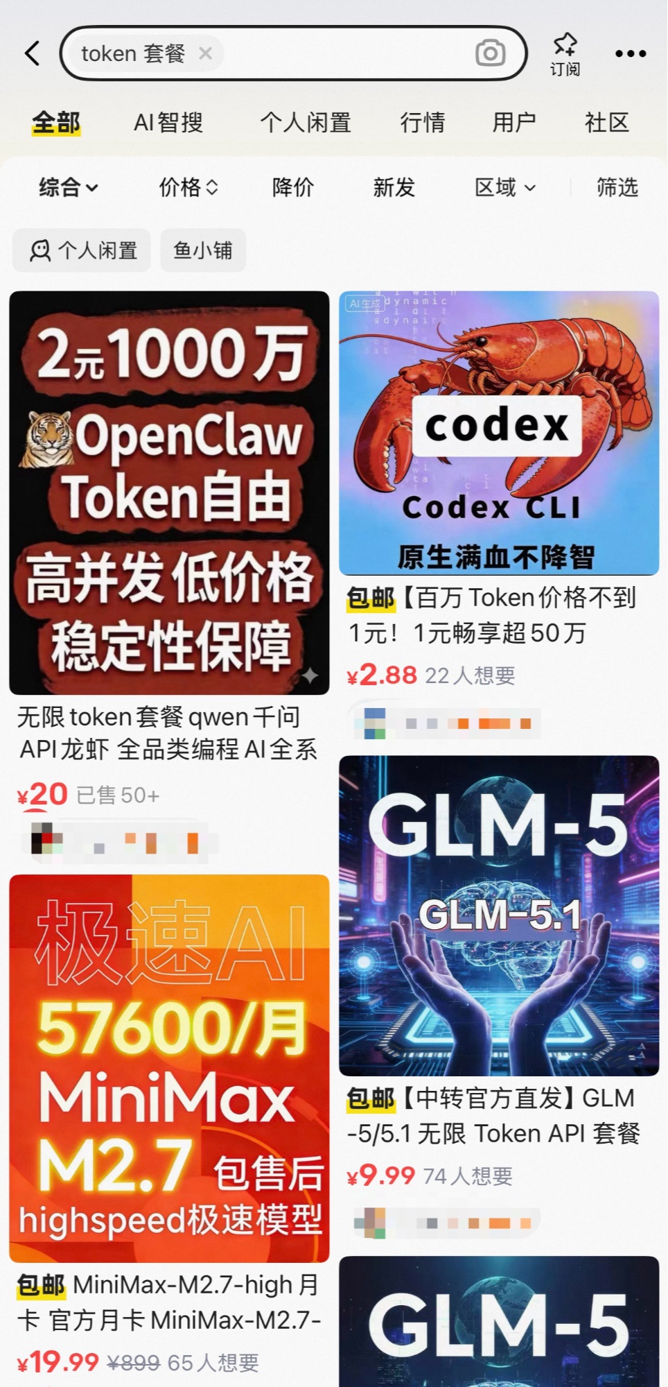 某交易平臺商家發(fā)布的“詞元”Token套餐信息