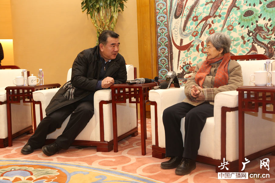 中央人民廣播電臺(tái)《行進(jìn)中國(guó) 精彩故事》系列報(bào)道:絲路新雨。中央人民廣播電臺(tái)臺(tái)長(zhǎng)王求對(duì)話“敦煌女兒”樊錦詩。(央廣網(wǎng)記者 杜虎 攝)