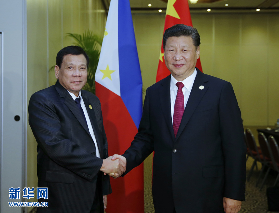 11月19日,國(guó)家主席習(xí)近平在利馬會(huì)見(jiàn)菲律賓總統(tǒng)杜特爾特。新華社記者 鞠鵬 攝
