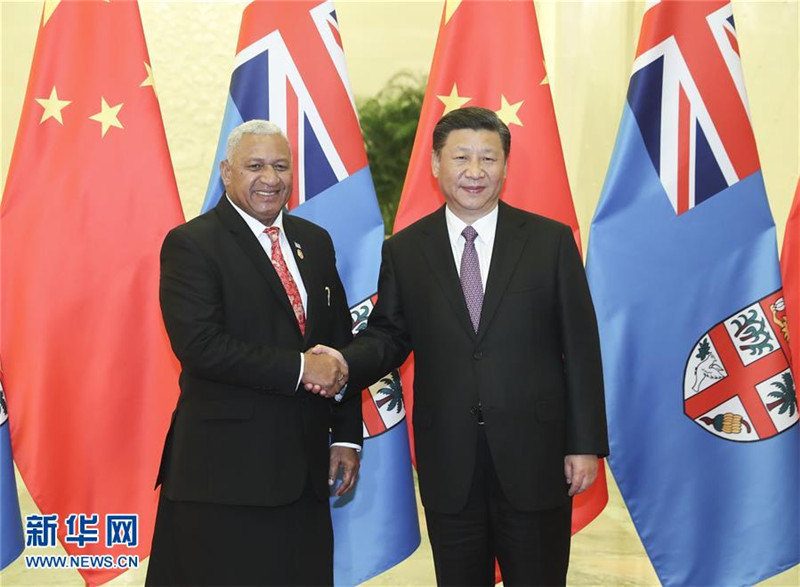 5月16日,國家主席習(xí)近平在北京人民大會堂會見來華出席“一帶一路”國際合作高峰論壇的斐濟(jì)總理姆拜尼馬拉馬。 新華社記者 龐興雷 攝