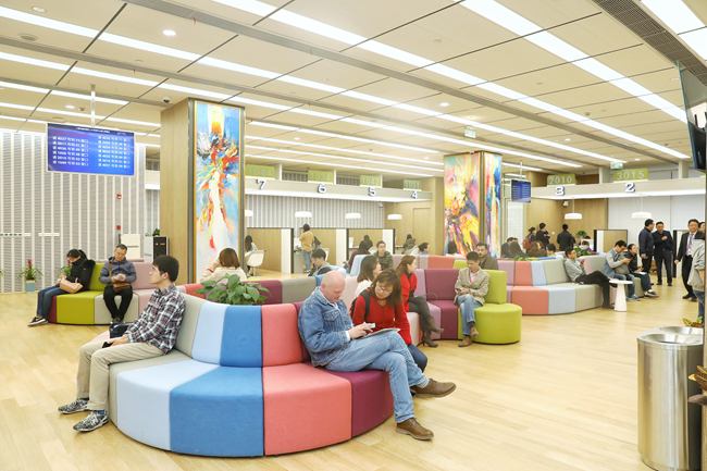 在上海浦東國(guó)際人才港,人們?cè)诖髲d里等待辦理手續(xù)。(黃日閱 攝)