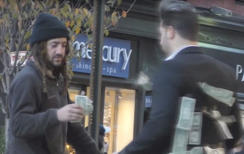 然而,實驗進入尾聲時,不同于先前遇上的其他路人,一名流浪漢表示自己僅需要拿兩張1美元的鈔票,用來購買今天所需的食物。他希望皮爾辛身上剩下的其他鈔票可以繼續(xù)提供給其他街上有需要的人。此舉深深打動了皮爾辛,他當場給了這名流浪漢60美元,表達他的感動與敬佩之意。