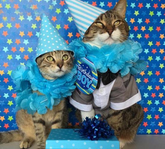 這些貓咪貓是從收容所里救出來的,珍妮佛經常為它們做各種奇異的裝扮。