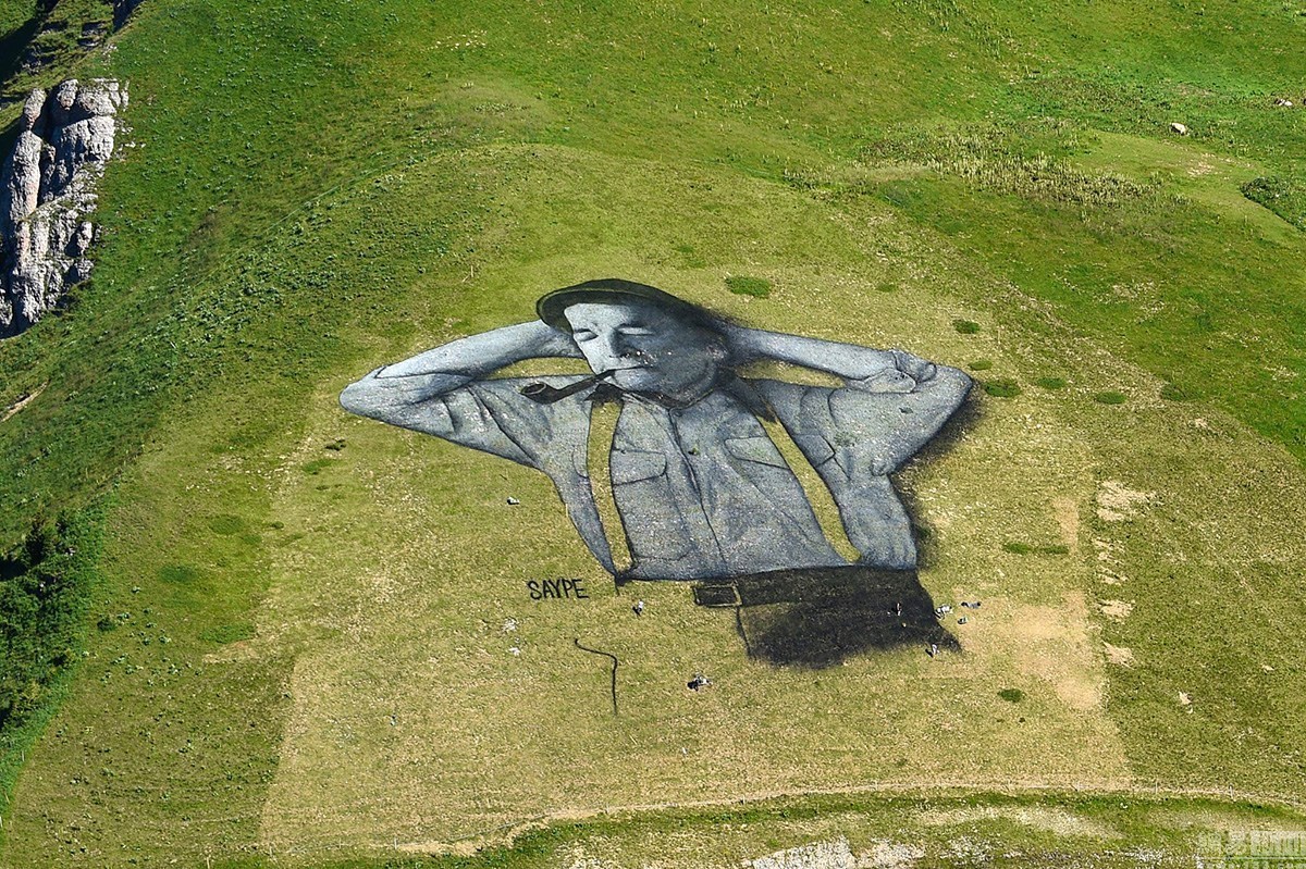 近日,由法國藝術(shù)家塞貝創(chuàng)作的可生物降解畫作在瑞士萊森附近的阿爾卑斯山上進行展示。該畫作長100米、寬100米,用面粉、亞麻籽油、水和可生物降解的天然色素等純天然材料繪制而成。據(jù)介紹,這幅以瑞士牧羊人形象為基礎(chǔ)創(chuàng)作的巨型畫作將只能在阿爾卑斯山上存留大約三周時間,之后便會自然消失。