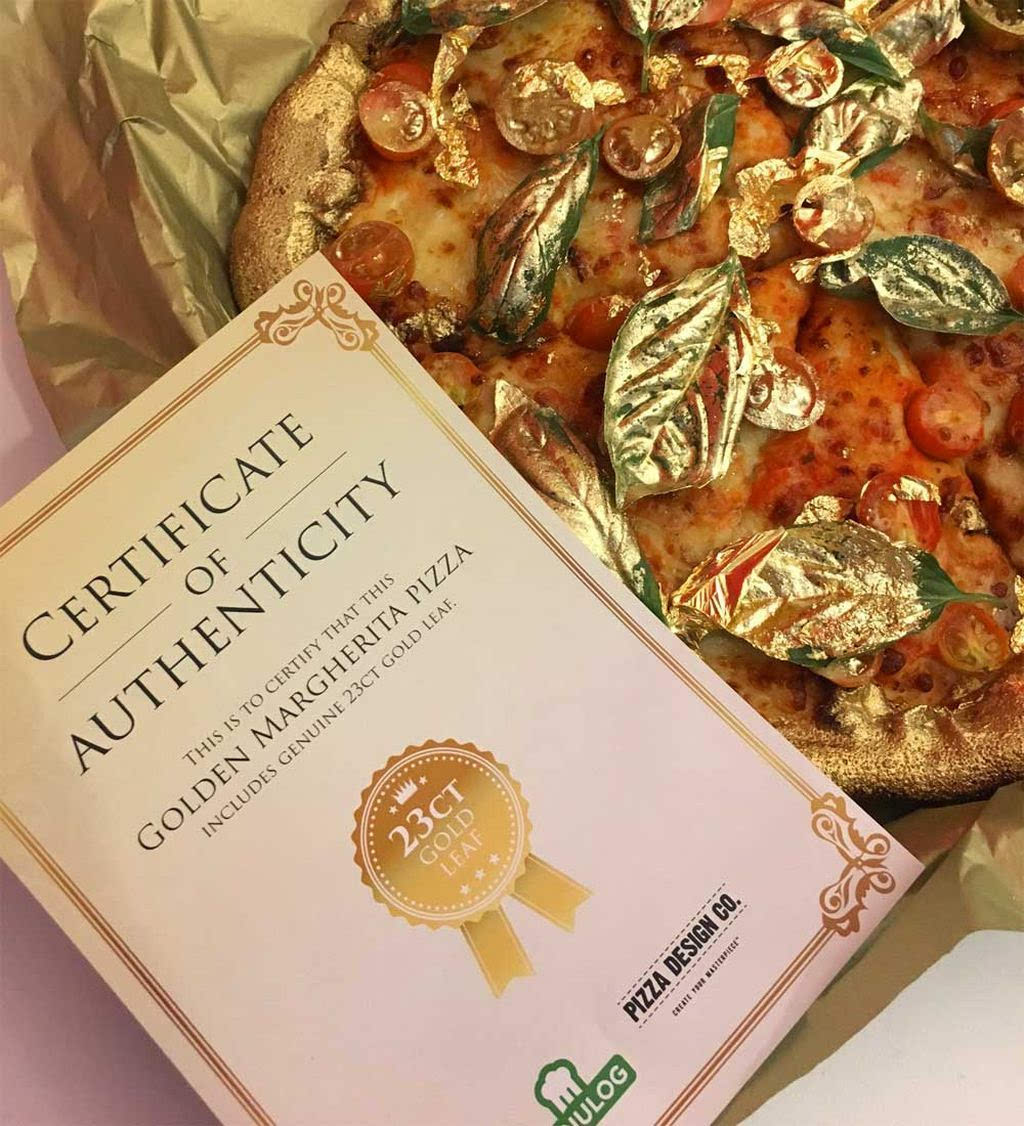 澳大利亞一家比薩餅店為慶祝入駐該國最大的網(wǎng)上訂餐平臺推出“23K黃金瑪格麗塔比薩”。