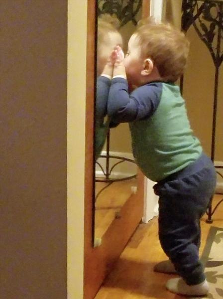 琳賽是迪安·奧克斯 的母親,她在家中拍攝到了這段視頻。視頻中,1歲大的小迪安在祖母家中來回跑動(dòng),非常不安分?删驮谶@時(shí),他忽然瞥見了旁邊一面大鏡子中自己的鏡像,誤以為是另一個(gè)小寶寶,便撲上去不住地親吻,時(shí)間長達(dá)30分鐘。