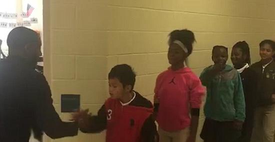 美國北卡羅來納州艾希禮公園小學(xué)教師巴里·懷特根據(jù)學(xué)生們的不同個性,自創(chuàng)了一套融合了舞蹈動作和步伐的擊掌動作,來幫助他們振奮精神,擁有更好的學(xué)習(xí)狀態(tài)。