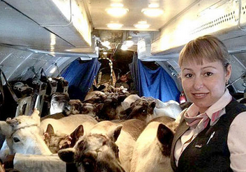 近日,俄羅斯的一架飛機(jī)上出現(xiàn)了頗為壯觀的一幕:數(shù)十只體型龐大的馴鹿一起搭乘飛機(jī)。原來(lái),這些馴鹿是被空運(yùn)到西伯利亞首府雅庫(kù)茨克市,參加一年一度的俄羅斯馴鹿牧民大賽。
