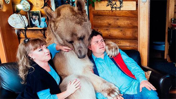 和一只大棕熊在一個屋檐之下朝夕相處是什么感覺?普通人恐怕想都不敢想。英國《每日郵報》近日講述了一個俄羅斯家庭和一只140公斤的大熊共同生活的故事。這只名叫斯捷潘熊已經(jīng)23歲了,3個月大的時候就來到這兩口之家,與斯維特蘭娜和潘捷列延科夫婦朝夕相處。