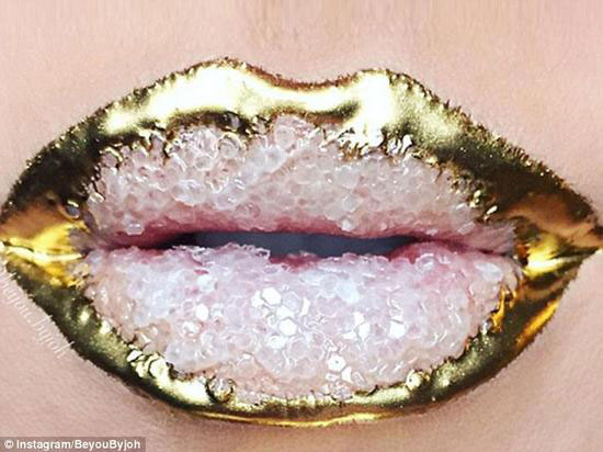 近日,社交網(wǎng)站Instagram上掀起時(shí)尚新浪潮:“唇上鑲水晶”。 許多化妝師及美妝愛(ài)好者紛紛在自己的嘴唇上嵌滿了炫目精致的鉆寶水晶,在Instagram上分享自己精心裝飾后亮彩魔幻的美唇照。盡管耗時(shí)費(fèi)力,但這種在唇部極盡奢炫的創(chuàng)意仍受到無(wú)數(shù)美妝愛(ài)好者的青睞。