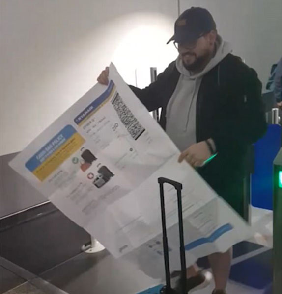 機場的女安檢員也被這張超大號的登機牌雷到了。但隨后,這位十分具有幽默細胞的安檢員將里安引到自動檢票機旁邊,微笑著說:“先生,我們來看看您的登機牌合不合格吧。”自動檢票機顯然也沒有見識過這種尺寸的大家伙,系統(tǒng)顯示無法檢測。