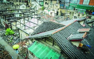 據(jù)了解, “陸氏民宅”的保護建筑位于上海的閘北區(qū)天潼路、福建路和浙江路地塊,從外面看上去,這地塊的建筑與一般正在拆遷的建筑沒有什么兩樣,外圍有一周圈的腳手架,并標有明顯的“拆遷”橫幅。走進弄堂里,記者發(fā)現(xiàn)天潼路800弄164支弄7號的陸氏民宅已是一片拆遷工地,一片廢墟,只剩下幾棟沒有屋頂?shù)臋M梁以及一棟還未完全拆完的磚瓦房。雖然現(xiàn)場已經(jīng)斷壁殘垣,記者依然能夠看到典型的清代四合院的框架。現(xiàn)場也沒有任何居民居住的跡象。緊鄰陸氏民宅有一個“閘北區(qū)5號街坊動拆遷基地,現(xiàn)場的民工黃師傅告訴記者,這個地方目前已停止拆遷。