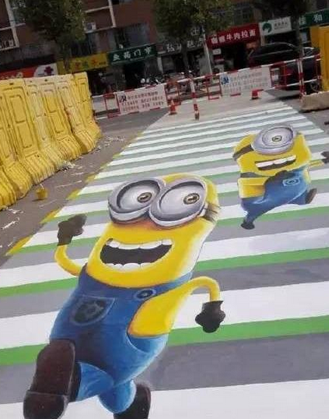 “小黃人”被搬上斑馬線 江蘇宿遷繪制3D斑馬線