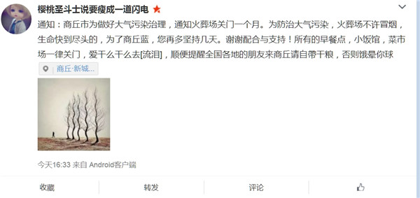 “從昨天開始,我們商丘市區(qū)所有的飯店都關(guān)門了,老百姓現(xiàn)在去超市,菜價(jià)是成倍的上漲,非常不方便。另外還有一些饅頭店也關(guān)門了,就是說(shuō)做饅頭不能用煤,現(xiàn)在老百姓買饅頭都要排隊(duì),很多地方也都買不到饅頭。”