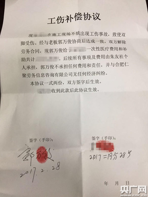 肥東縣費(fèi)大郢建筑勞務(wù)有限公司總經(jīng)理郭萬俊今天下午回復(fù)記者稱,他和工人簽的合同是兩年,約定每半年結(jié)一次工資,支付方式是把錢打到工人國內(nèi)的銀行卡上。和中建的合作終止,因?yàn)榻衲?月工人罷工,他損失非常大。
