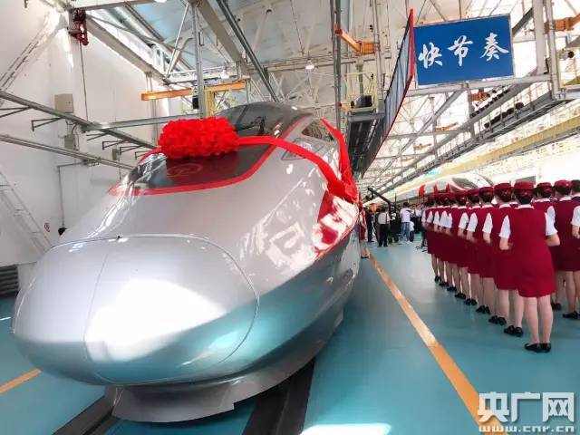 央廣網北京6月25日消息(記者郭淼)據中國之聲《新聞晚高峰》報道,具有完全自主知識產權的兩列中國標準動車組,今天(25日)正式被命名為“復興號”。而且明天(26日),“復興號”將率先在京滬高鐵兩端的北京南站和上海虹橋站雙向首發(fā),分別擔當G123次和G124次高速列車。“復興號”動車組試驗速度可達400km/h及以上,持續(xù)運行速度為350km/h。那么,從“和諧號”到“復興號”經歷了怎樣的變化?未來具有純正中國血統(tǒng)的“復興號”又會有怎樣的高能?