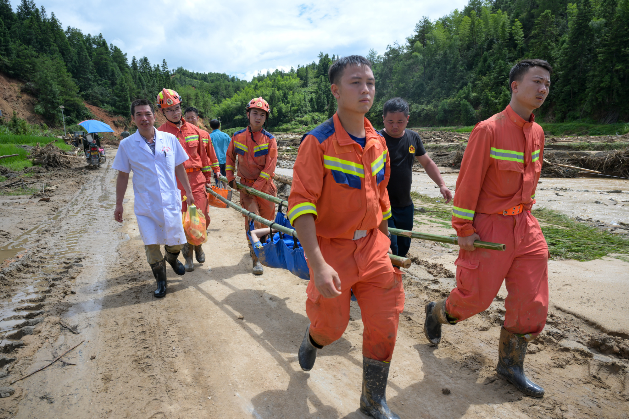 湖南省郴州市消防救援支隊副支隊長鄧湘波說:“分成了15個組,就是以15個自然村為基點,向邊上輻射,逐棟逐戶進行摸排,因為上面道路損毀嚴重,山體滑坡造成一些房屋的傾覆,我們需要排查是否有被困的人員,30日我們希望能夠做到全面摸排一次。不僅外面通向八面山鄉(xiāng)的道路在搶修,我們從這個村轉移到另外一個村很困難,比如成康村,帶上裝備,徒步需要8小時至10小時,我們聯(lián)系市里的指揮部,準備找到一個比較平緩的地方,采用空投的方式!