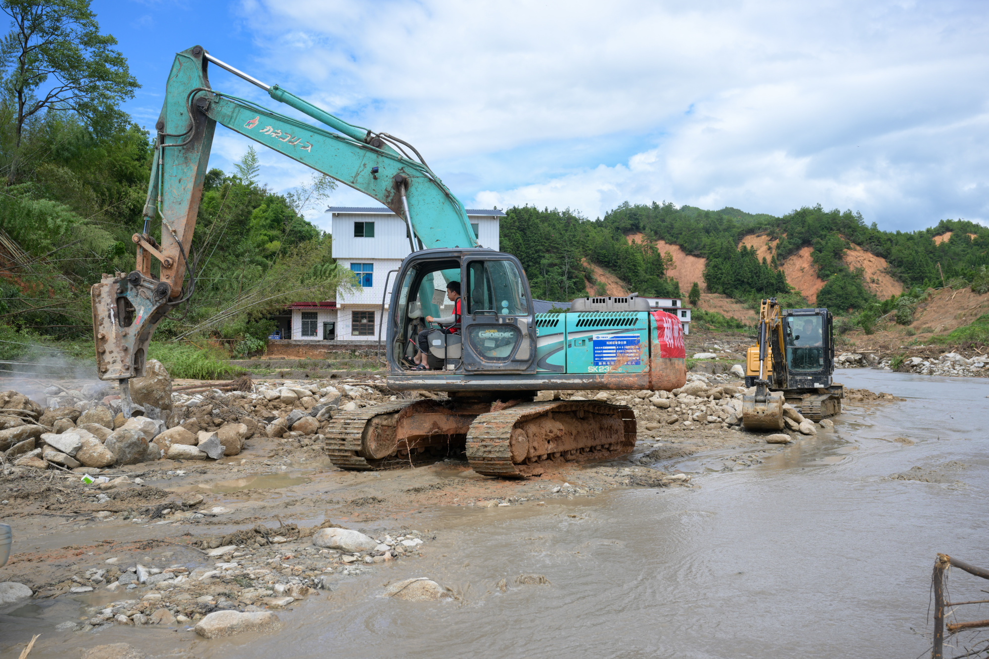 資興市八面山鄉(xiāng)部分道路中斷,當地多支力量正在搶通(圖片來源:郴州市委宣傳部)