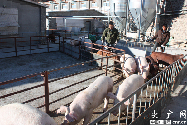淶水縣悅馳養(yǎng)殖有限公司出欄的生豬正在裝車(央廣網(wǎng)記者杜震攝)