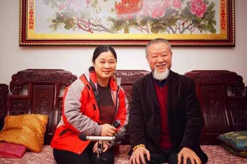 記者采訪廣西壯族自治區(qū)彩調(diào)團原團長龍杰鋒(右)