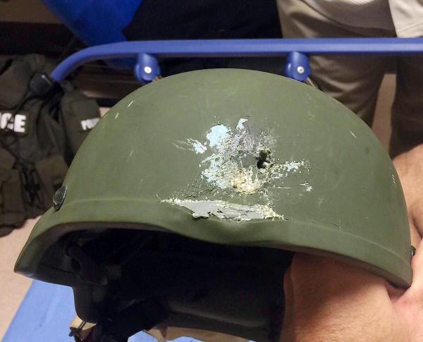 6月12日,在美國佛羅里達(dá)州奧蘭多市,一名警察的頭盔在擊斃槍擊案嫌犯的行動中被子彈擊中。