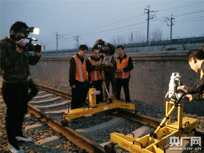 津保鐵路開通前,工作人員對(duì)軌道進(jìn)行測(cè)試