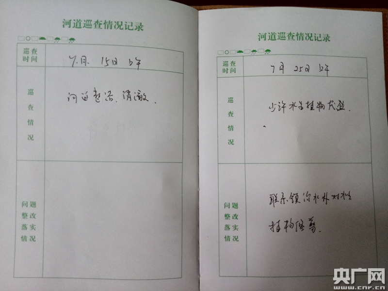 這是吳建榮上任“民間河長”以來的第157天。翻看他的河長記錄本,上面認(rèn)真地寫著河道巡查情況:“7月2日上午,河道少許綠藻”;“7月10日,河道干凈,水體正!;“7月25日上午,發(fā)現(xiàn)水生植物茂盛,聯(lián)系鎮(zhèn)治水辦對水生植物修剪”……幾乎每天都有記錄。村民介紹說,2月份到現(xiàn)在,狹港已經(jīng)明顯改善了,水比以前清多了。