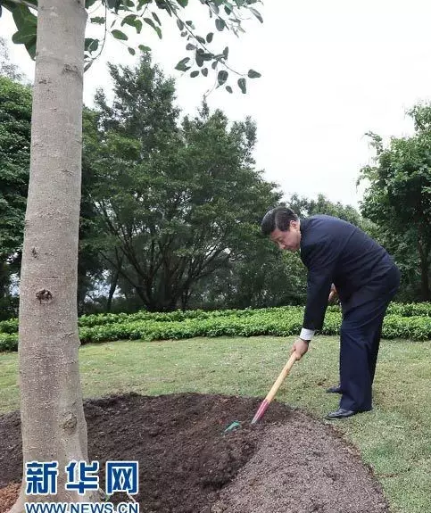 2012年12月,習近平在深圳蓮花山公園種下一棵高山榕樹