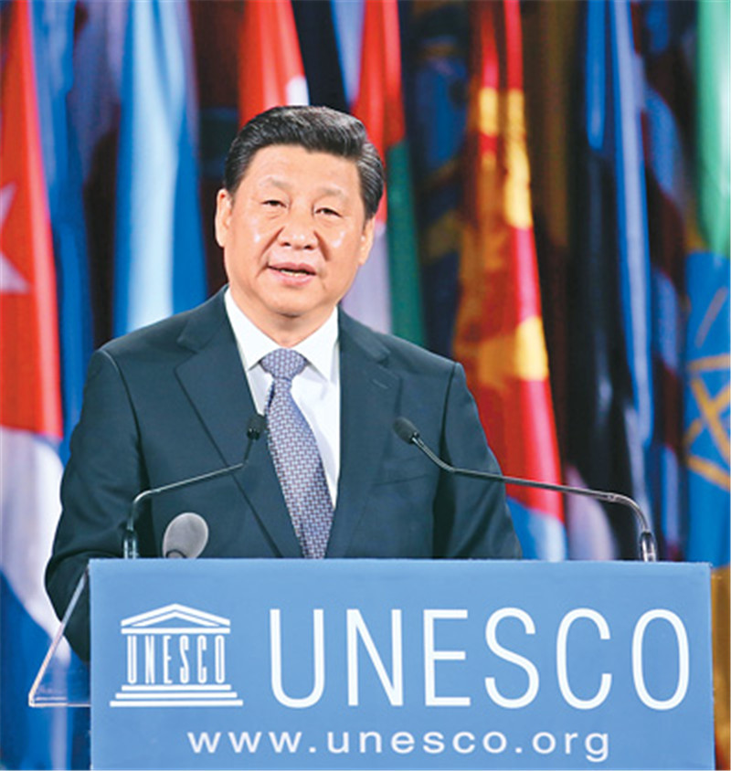 2014年3月27日,國家主席習(xí)近平在巴黎聯(lián)合國教科文組織總部發(fā)表重要演講。新華社記者 姚大偉 攝