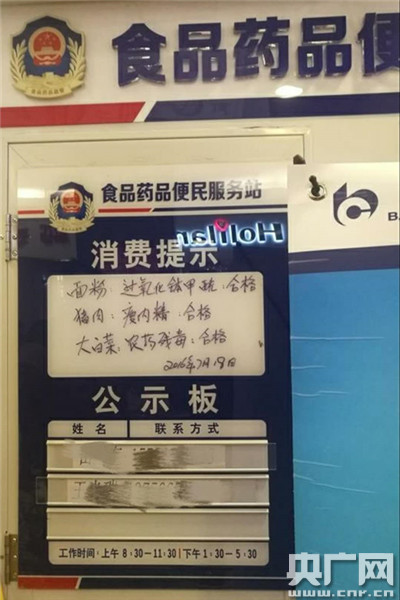 在吉林省長春市,記者跟隨舉報人走訪了多家大型超市,除一些超市沒有建設服務站,在歐亞超市、永輝超市、沃爾瑪?shù)榷嗉,記者發(fā)現(xiàn)很多服務站空無一人。在永輝超市臨河街店服務站旁,一位工作人員說,“平常都是每天早晨做檢測,平時都沒有人,不讓進。我們自己檢測然后他們來檢查,一個月2次,平時沒有人在這里待著!痹跉W亞超市臨河街店,便民服務站早已被各種做活動的宣傳廣告所遮蓋,服務站提示板上寫的農(nóng)藥殘留檢測信息還停留在2016年7月。當被問到,服務站工作人員都去哪兒了?超市員工說,他們偶爾來。