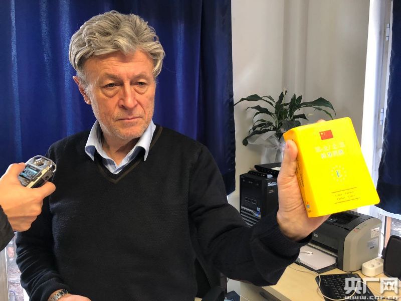 土耳其安卡拉大學漢學系教授歐凱在展示他主編的中土雙語字典