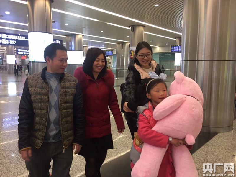 央廣網廣州2月9日消息(記者李欣 謝元森)據(jù)中國之聲《新聞縱橫》報道,“到啦!準備下車……讓我們帶著激動的心情,沖向廣州吧!”9個小時的期待,520公里的路程,188天的分離,小雪琴在列車抵達廣州東站的那一刻,終于忍不住歡呼起來,懷抱一個接近自己身高的粉色大熊娃娃,向著出站口飛奔。遠遠的,她就見到了這些天最大的期待。