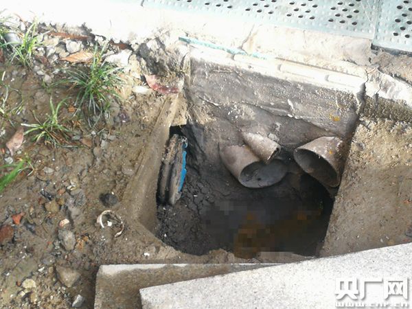 圖為污水管接入雨水井。(央廣網(wǎng)記者 杜金明 攝)