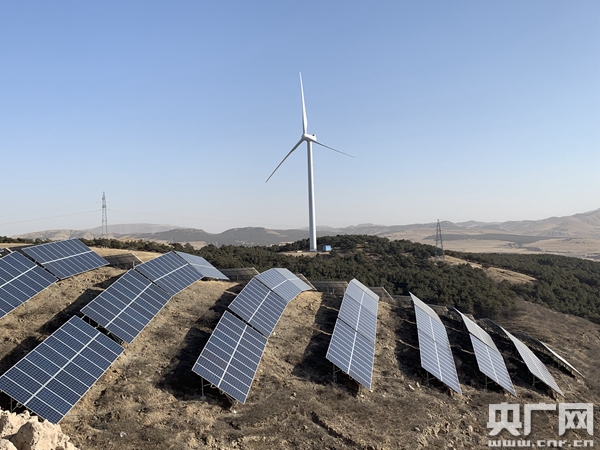 光伏板與旁邊的林地(央廣記者 任夢(mèng)巖攝)