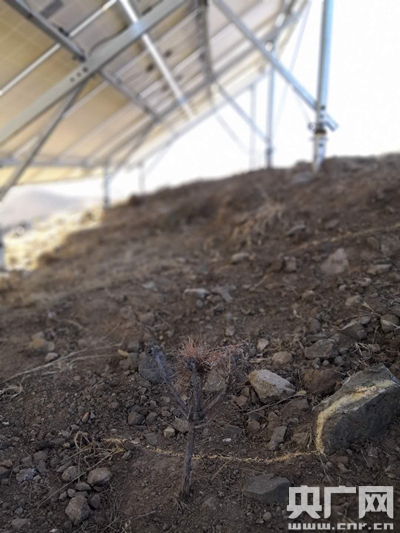 光伏板下僅存的樹苗(央廣記者 任夢(mèng)巖攝)