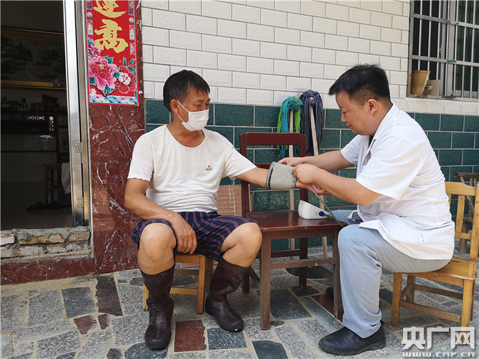 醫(yī)務人員給受災村民做簡單的身體檢查(中央廣播電視總臺央廣記者 謝元森 攝)