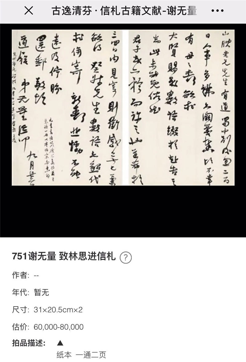 “古逸清芬·信札古籍文獻(xiàn)”專場(chǎng)拍品中,出現(xiàn)了數(shù)十件近代名人致西南名儒林思進(jìn)的信札,官方估價(jià)在1萬(wàn)-8萬(wàn)元不等,這些信函屬于四川省圖書(shū)館的館藏文物,應(yīng)存于四川省圖書(shū)館。這一消息最初由公眾號(hào)“江上說(shuō)的”發(fā)出,11日下午,中國(guó)之聲記者獨(dú)家聯(lián)系到文章作者江上。