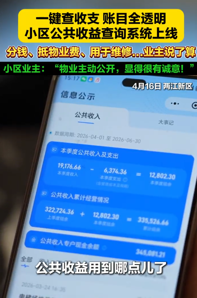 重慶兩江新區(qū)一家物業(yè)公司自主研發(fā)公共收益線上查詢系統(tǒng),讓小區(qū)公共收益管理更透明。