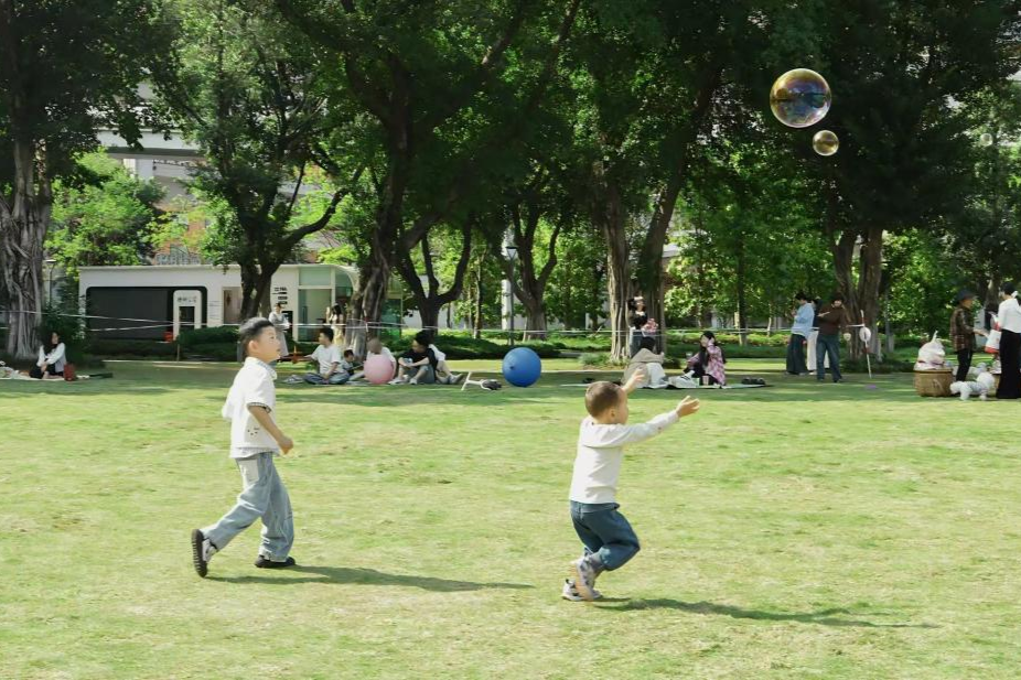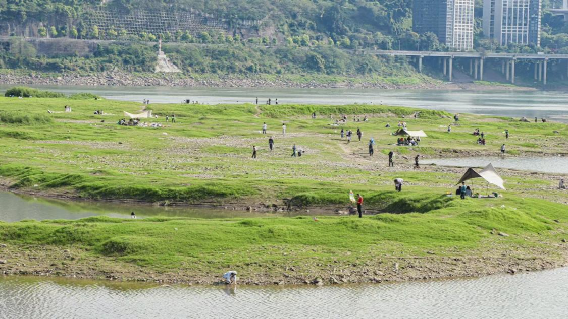珊瑚公園里,大片草坪如綠毯鋪展。孩子們追著泡泡奔跑嬉戲,家長們鋪開野餐墊圍坐閑談,笑聲在暖風(fēng)中蕩漾。一旁的江灘濕地更是生機盎然:市民或漫步小徑,或臨水嬉戲,抬頭可見跨江大橋飛架南北,城市繁華與江野詩意在此完美交融。(來源:渝中區(qū)委宣傳部、渝中區(qū)生態(tài)環(huán)境局)